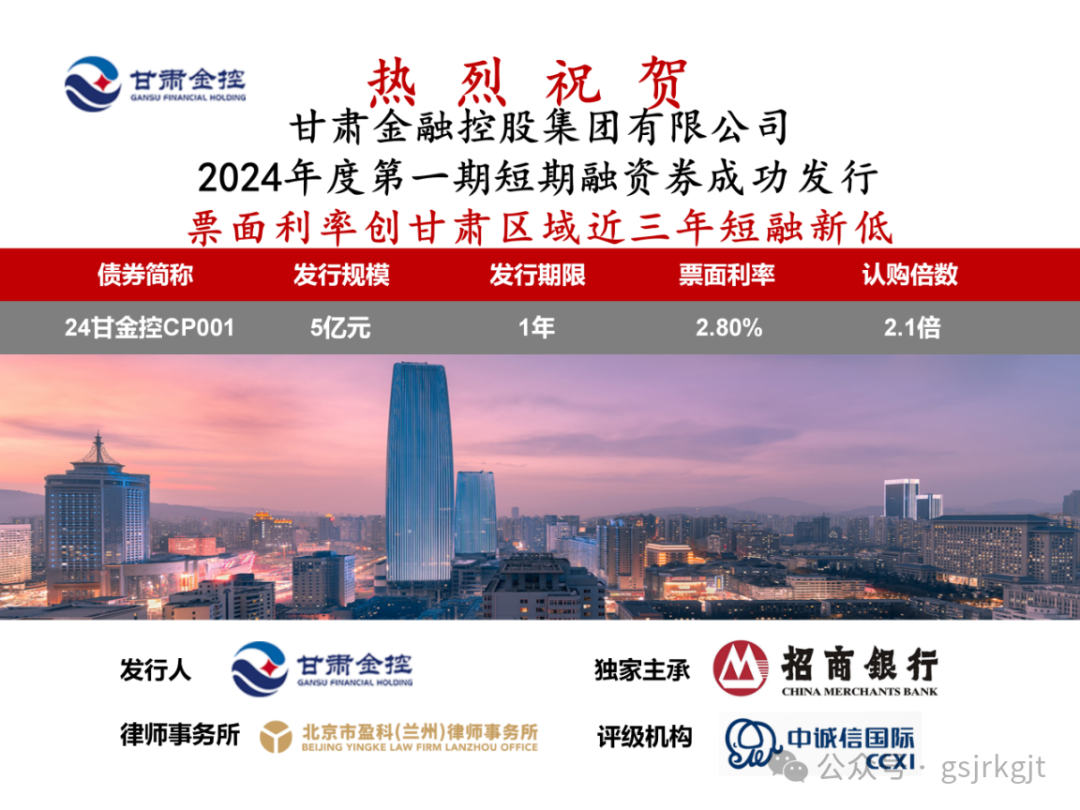2024年2月6日,九游平台成功发行2024年度第一期短期融资券,发行规模5亿元,债券期限一年,票面利率2.80%,债券票面利率创甘肃区域近三年同品种债券利率新低。