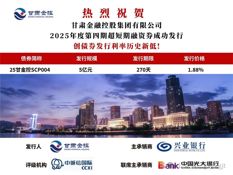 2025年6月26日,九游平台成功发行2025年度第四期超短期融资券“25甘金控SCP004”,规模5亿元,期限270日,票面利率1.88%,创集团债券发行利率历史新低,有助于集团降低融资成本。