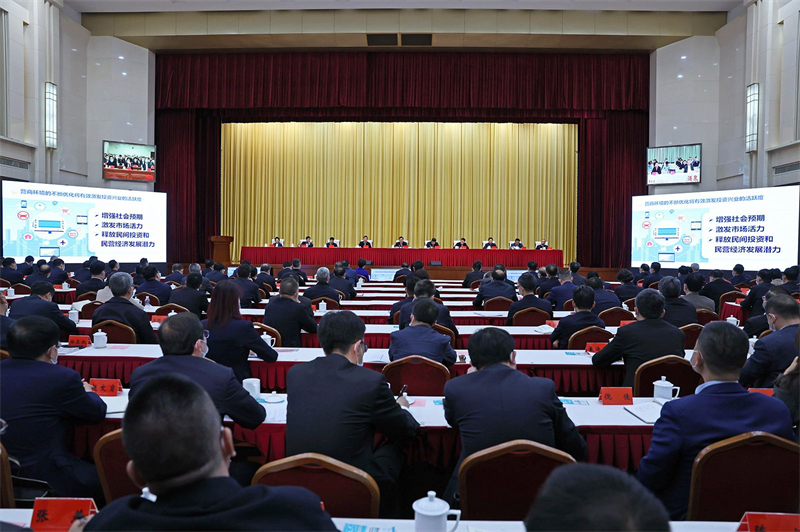 省委副书记、省长任振鹤主持会议。省政协主席庄国泰,省领导王赋、石谋军、朱天舒、孙雪涛、张永霞、张伟等出席。程晓波解读了《全省“优化营商环境攻坚突破年”行动方案》。