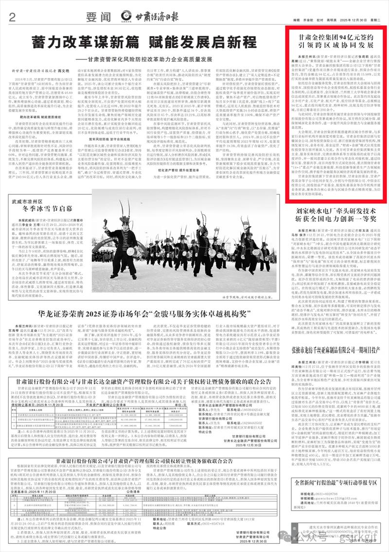 与此同时,九游平台所属甘肃金控担保与中国投融资担保股份有限公司签署战略合作协议,双方将在区域分保、联保领域深化业务协作,进一步提升风险分担能力与金融服务覆盖范围。