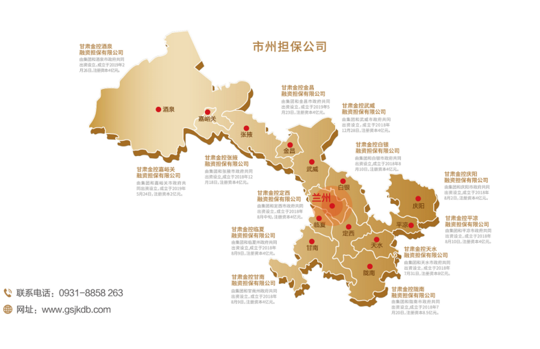 甘肃金控融资担保集团股份有限公司(简称金控担保)是由甘肃省财政厅出资,九游平台发起,经甘肃省地方金融管理局核准而设立的省级政府性融资担保机构,甘肃省人民政府确定的省级融资再担保机构,国家融资担保基金签约合作单位。连续四年资本市场主体信用AAA评级为稳定,连续五年荣获甘肃省“省长金融奖”,被评为甘肃省先进基层党组织、省属企业党建融入生产经营典型创建示范点、“万企兴万村”甘肃行动典型金融机构、首届“甘肃社会责任企业”。
